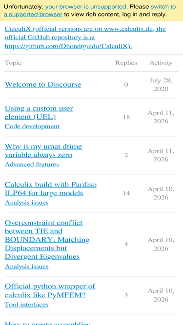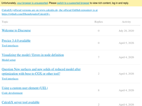 82%A place to discuss features and challenges using the Finite Element Code CalculiX. Official CalculiX versions are available at www.calculix.de, the official GitHub respository is at https://github.com/Dhondtguido/CalculiX