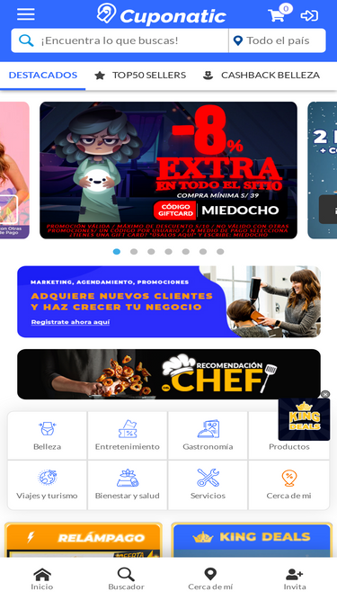 84%sitio de ofertas, descuentos y cupones en productos y servicios.