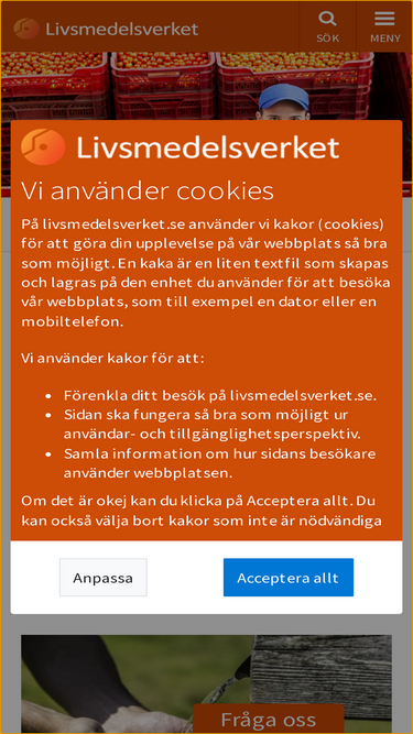 88%Livsmedelsverket arbetar för säker mat och bra dricksvatten, att ingen konsument ska bli lurad om vad maten innehåller och för bra matvanor. Mat, dricksvatten och matvanor är centrala för ett hållbart samhälle.
