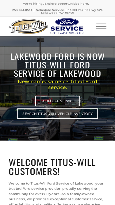 59%Titus-Will Ford Service of Lakewood is your certified Ford service center. We're located at 11502 Pacific Hwy SW in Lakewood, WA.