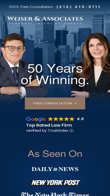 84%Trust a firm with over 50 years of winning. Call today for a free consultation on your case! 212-213-3111
