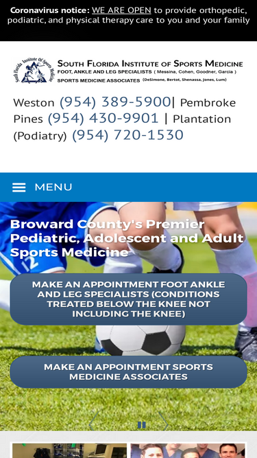 100%South Florida Institute of Sports Medicine, is a comprehensive orthopedic and podiatric practice located in Pembroke Pines, Weston, and Tamarac, FL