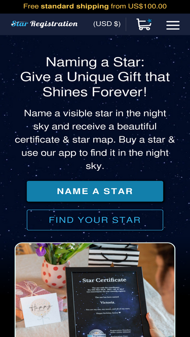 100%Name a star with the Official Star Register. Receive a personalized star certificate, star map, and access to view your star in 3D. Perfect gift for any occasion.