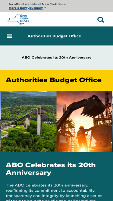 91%new york state authorities budget office (abo) home page. a one-of-a-kind office that provides expert public authority oversight, technical assistance and information including: policy guidance, best practices, data analysis, compliance reviews, operational reviews, governance reviews, audits, annual reports, budget reports, board member training and enforcement actions taken by the abo