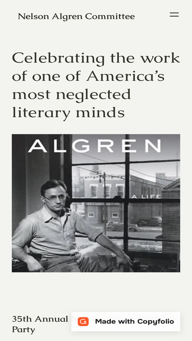 85%Nelson Algren's website built with Copyfolio.