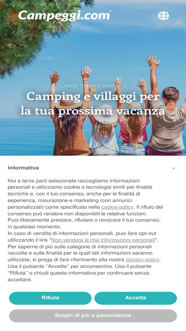 89%Vi er en portal med campingpladser og resorts i Italien og Europa til udendørsferier designet til enlige rejsende, par og familier. Book hos os!