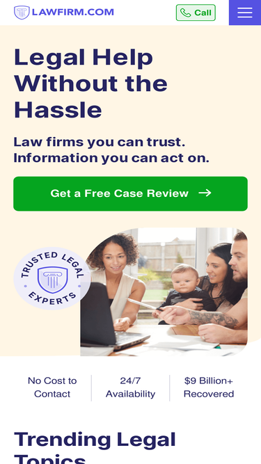 Lawfirm.com can help you get answers to common legal questions, find an experienced law firm near you, and receive compensation.