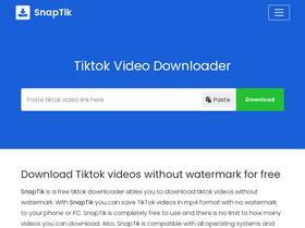 80%SnapTik is a free TikTok video downloader that allows you to download TikTok videos without watermark in MP4 format and HD, Full HD, or 4k quality. Using SnapTik you can save TikTok videos in mp4 format with no watermark to your phone or PC.