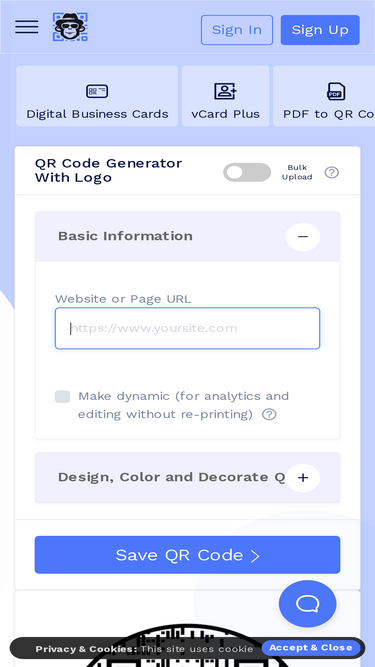 70%Boost your marketing with QRCodeChimp, rated the best QR Code Generator and Management Platform for businesses! Easily create custom QR Codes with logos for free, and take advantage of features like advanced analytics, bulk uploads, and diverse QR shapes. Our comprehensive platform supports Digital Business Cards, QR Codes for URLs, social media, and much more. Optimize your digital presence and drive engagement effortlessly.