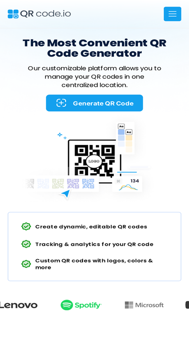 84%QR Code.io with your logo, frame, colors & more. Create, manage and statistically track your QR codes. For URL, vCard, PDF and more