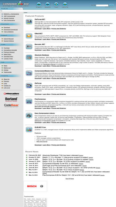 79%components for developers. .net, vb.net, delphi, c++ builder, activex, kylix, c#. components: zipforge.net, flexcompress.net, absolute database, compression master suite, flexcompress