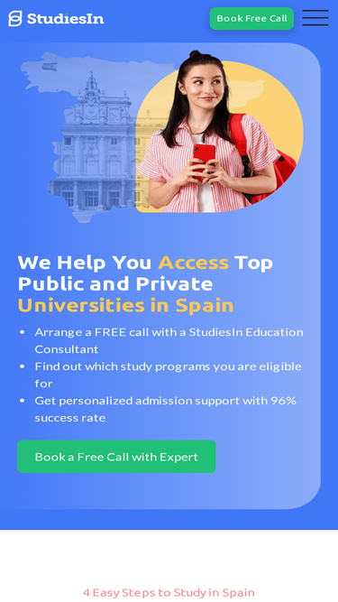 92%StudiesIn has more than 8,000 study programs in Spanish public and private universities and language institutes. Talk to our study abroad experts in Spain.