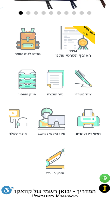 85%הרשת המובילה בענף מכשירי הכתיבה והציוד המשרדי בירושלים עם למעלה מ 56 שנות ניסיון. מגוון עשיר של מוצרים לתלמיד, לסטודנט ולמשרד הביתי. בקרו באתר לרכישת ציוד משרדי וכלי כתיבה, צפו במוצרים והזמינו אונליין.