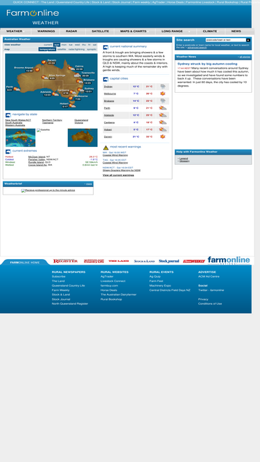 100%Australia weather - 8-day weather forecast, current conditions, weather warnings, radar and satellite from Farmonline Weather.