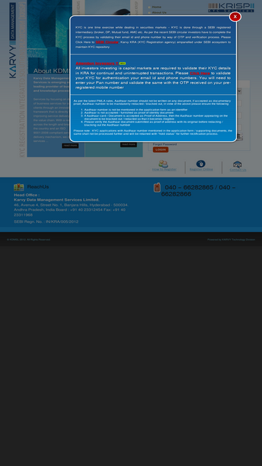87%cams kra provides kyc services by cams, mutual fund trasfer agency. update, change, store kyc information for mutual fund investment