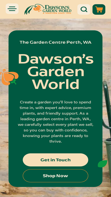 76%Dawson’s Gift Vouchers Digital Gift Cards - Fast, Flexible & Convenient Our digital gift cards are delivered instantly to the email address you provide, making them the perfect last-minute gift. They can be used both online and in any Dawson’s Garden World store, giving the recipient complete flexibility. No postage, no waiting, just quick, easy gifting. Physical Gift Cards - Posted to You or Your Recipient Physical gift cards are available for delivery only and must be purchased separately from other items in your order. They can be redeemed at any of our four Dawson’s Garden World stores Forrestfield, Joondalup, O’Connor, and Swanbourne — but cannot be used online. Delivery takes approximately 4–5 working days via Australia Post. You can choose to have a physical gift card sent directly to family or friends. We can include a personalised printed message, simply enter your message in the “Order Notes” box at checkout. Postage for physical gift cards is $1.95. If you have any questions, our friendly team is always here to help.
