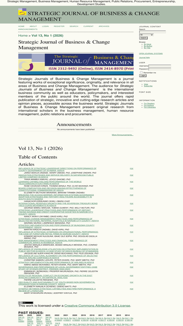 73%strategic journals of business & change management publishes high quality original peer-reviewed articles from international scholars in the line of strategic management, business management, human resource management, public relations and procurement