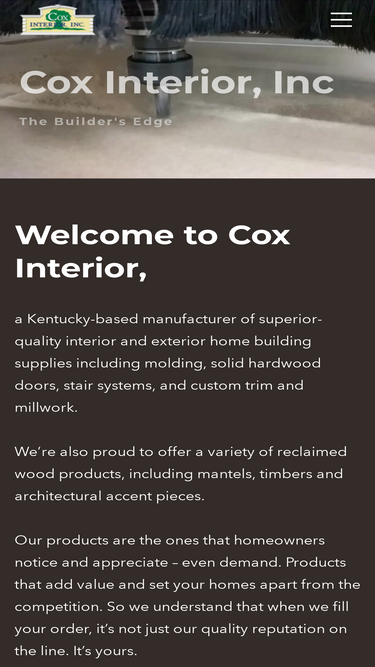 97%Custom Millwork in Kentucky — Craftsmanship That Builds Homes, Not Just Houses Proudly Serving Builders & Homeowners in KentuckyTennesseeGeorgiaIndianaAlabama REQUEST AN ESTIMATE WATCH OUR STORY Get in Touch Get a Custom Estimate Our SERVICES Cox Interior The Builder’s Edge — Why Builders and Homeowners Choose Cox Interior When it comes to millwork, trim, and doors,