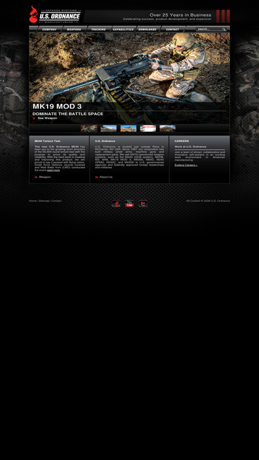 89%u.s. ordnance, nevada, usa, manufacturer and trainer of military defense weapon systems and machine guns. m2 systems, m2a2 qcb, m3, mk43, m60e4 & m60e6 system, m240 systems, mk19 mod3, and accessories.