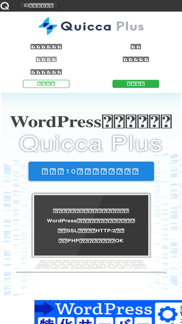 86%wordpress特化のレンタルサーバー「quicca plus」のトップページです。ウェブサーバーnginxによる高速な処理を実現し、wordpressのインストール・各種自動設定の機能がついたレンタルサーバーが200円からご利用できます。