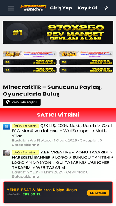 Minecraft Türkiye Forum, sizler için minecraft eklentileri, haritaları, minecraft sunucuları, skriptleri, plugin paketleri paylaşıyor. Aramıza katıl.