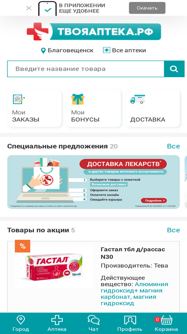100%онлайн-аптека планета здоровья - это удобный сервис для поиска лекарств, проверки наличия препаратов в ближайшей аптеке и быстрого оформления онлайн заказа. на сайте представлен широкий ассортимент лекарственных препаратов, инструкции по применению и подбор аналогов.