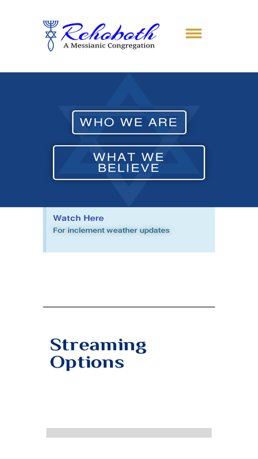 100%we are jewish and non-jewish who wait daily for the coming of the messiah…the second time who we are what we believe live streaming on wednesdays at 7 pm and saturdays 10:30 am with facebook and youtube streaming options live live web stream psalm 126:3 the lord has done great things for us; we are glad. no erev shabbat service…