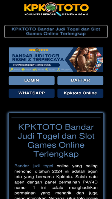 100%Kpktoto adalah situs togel resmi yang akan antar kunci kesuksesan kepada anda yang telah bermain lotto online. Melalui bo togel Kpk Toto setiap pemainnya akan diberikan bayaran terbesar.