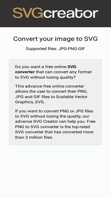 53%Convert your images to SVG format with our free online tool. Easy-to-use converter supporting PNG, JPG, and GIF files. Get high-quality vector graphics instantly.