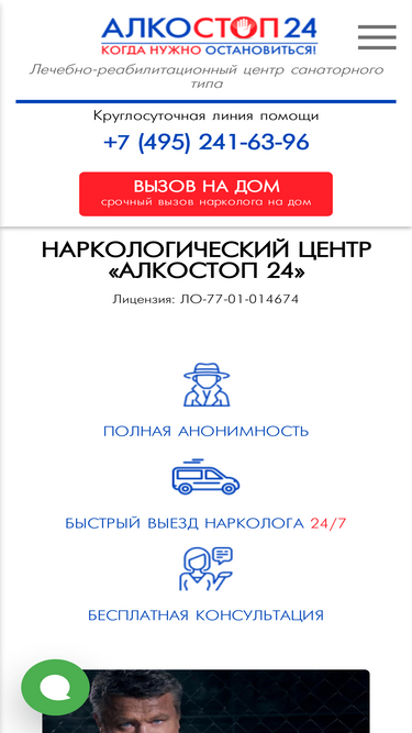 94%Оказываем срочную наркологическую помощь, услуги лечения алкоголизма, наркомании и других зависимостей. Круглосуточная наркология на дому и в стационаре Москвы.