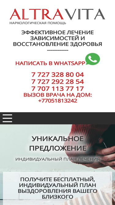 85%Лечение алкоголизма и наркомании. Наркологический диспансер ALTRA VITA в Алматы. Выведение из запоя. Обращайтесь к нам и мы обязательно Вам поможем.