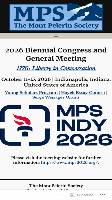 100%Hayek Essay Contest The Mont Pelerin Society (MPS) hosts the Hayek Essay Contest in conjunction with the MPS Biennial Congress and General Meeting. 2026 Hayek Essay Contest The Mont Pelerin Society…