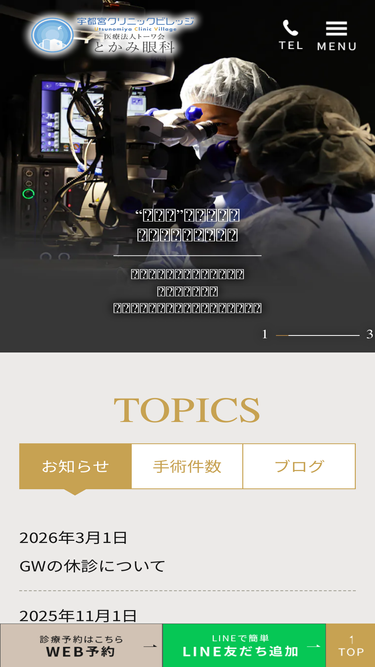 96%宇都宮市・鹿沼市・壬生町で眼科をお探しならとかみ眼科へ。鶴田駅・江曽島駅近くの眼科です。駐車場完備、土曜日・日曜日の診療にも対応しています。白内障日帰り手術、硝子体手術にも対応しています。お気軽にご相談ください。