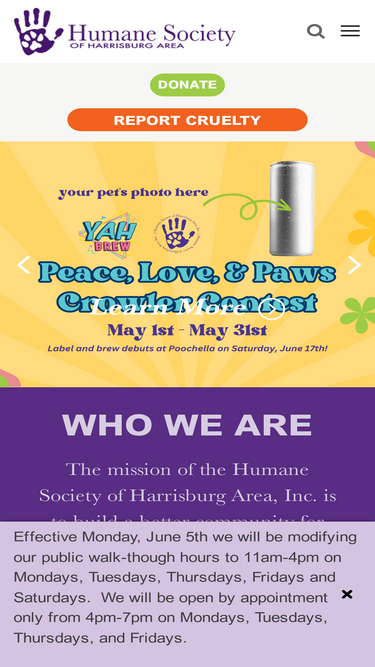 84%If your pet is found or brought into Humane Society of Harrisburg Area, the information you provide in this form will assist us in maintaining appropriate documentation. Including a photograph of your pet will help staff positively identify animals reported to Humane Society of Harrisburg Area as lost or found.