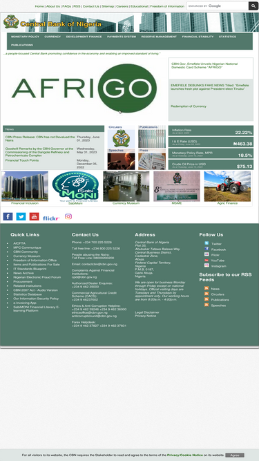 85%home page of the central bank of nigeria's website. nigeria's macro indicators, foreign exchange details, inflation rate, cbn's latest news, documents and publications can be found here.