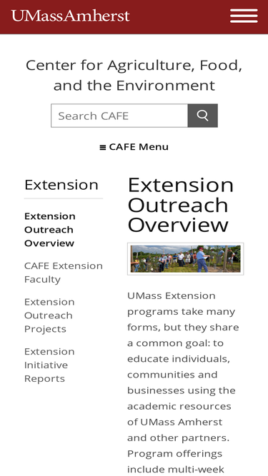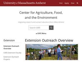 81%The Center for Agriculture, Food and the Environment (CAFE) is the home of UMass Extension and the Massachusetts Experiment Station. CAFE integrates research and outreach education in agriculture, food systems and the environment.