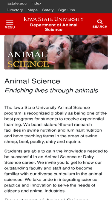 76%The Department of Animal Sciences offers two major programs - Animal Science and Dairy ScienceBoth of these majors also have the option to specialize in Pre-Veterinary Medicine. The information on this page describes some of the most common entry positions for graduates. The average starting salary for 2023-2024 graduates was $54,535 for students graduating with a B.S. in animal science and $66,500 for dairy science. The 2022-2023 placement rate was 100% for animal science majors and 100% for dairy science majors. Common Career Areas