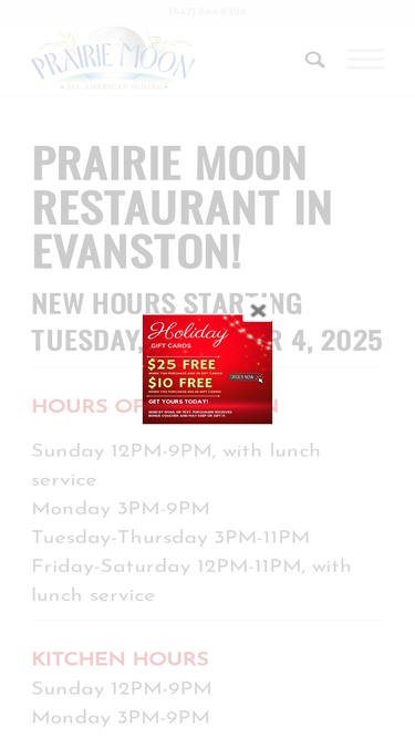 100%Menu for Evanston restaurant, Prairie Moon patio dining, delivery, curbside pick up. Full menu plus beer, wine, and meal kits.