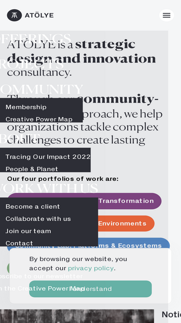 41%TERMS OF USE AND PRIVACY POLICY Date of Enforcement: November 1st, 2017 Updated on: August 16, 2021 (with information about ATÖLYE’s Dubai entity) TERMS OF USE Atölye Bomonti Organizasyon Danışmanlık Üretim Sanayi ve Tic. A.Ş. (“ATÖLYE”) is committed to respecting the right to inform its visitors about the terms of use of ATÖLYE’s website of http://www.atolye.io (“Website” or “Site”) and ...
