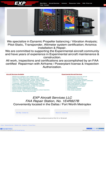 avionics, aircraft, experimental aircraft maintenance, vfr/ifr certification, altimeter certification, altitude encoder, vfr certification, ifr certification, avionics, far 91.411, far 91.413, pitot static testing, transponder testing, dynamic prop balancing, texas, dallas, fort worth.