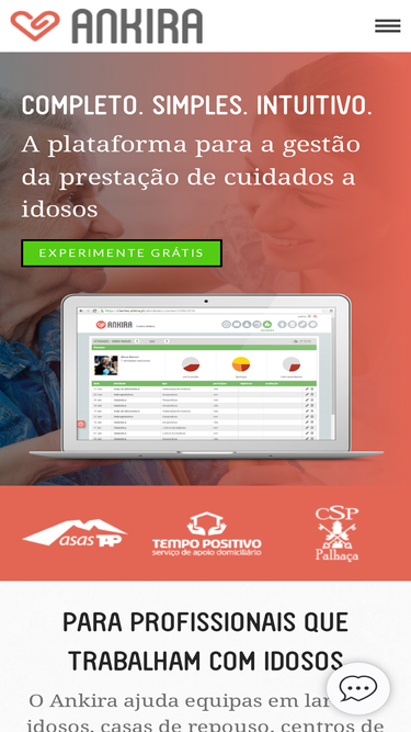 81%Se trabalha numa entidade que presta cuidados a idosos – Lar de Idosos, Centro de Dia, Serviço de Apoio Domiciliário ou outra resposta social – o ANKIRA é a ferramenta que precisa: planeamento, registo e monitorização dos cuidados dos seus clientes, em qualquer lugar.