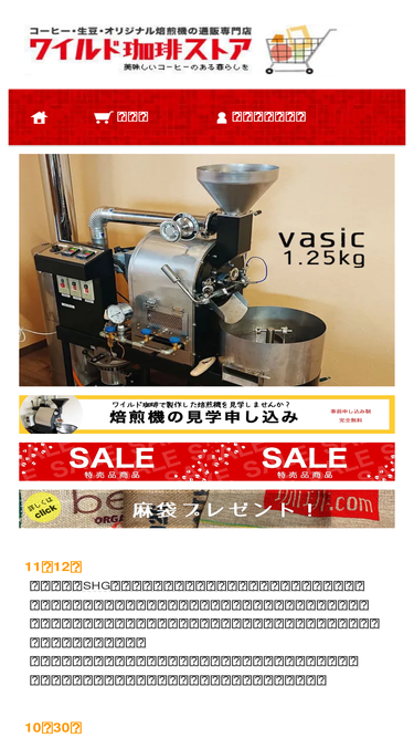 94%東京都青梅市にvasic2.5kg焙煎機を設置しました。喫茶メインにやっていましたが焙煎機を購入して焼き豆の販…