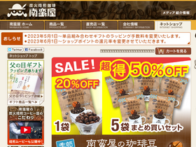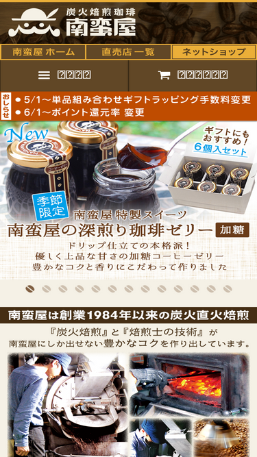 79%小さな贅沢を売る店[南蛮屋]のネットショップ。ひと味ちがう炭火焙煎のコーヒー豆をお届けしています。紅茶・フレーバーティー・ハーブティーなども量り売り販売。コーヒーにぴったりのこだわりスイーツや、器具類なども充実。