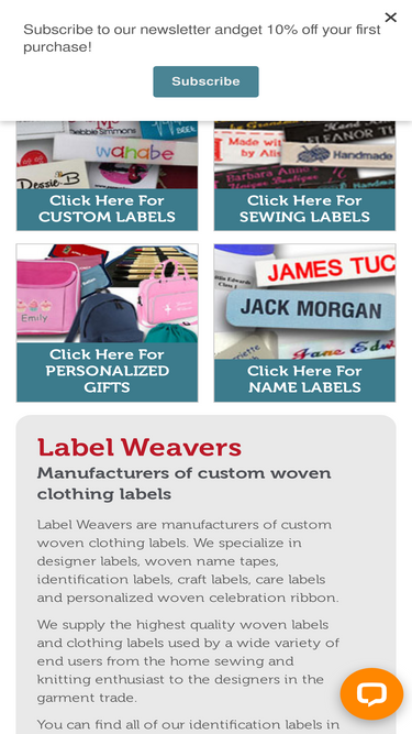 90%Label Weavers – a US manufacturer of custom woven and printed labels. We specialize in designer labels, name tapes, care labels, school ID tags & personalized ribbons.