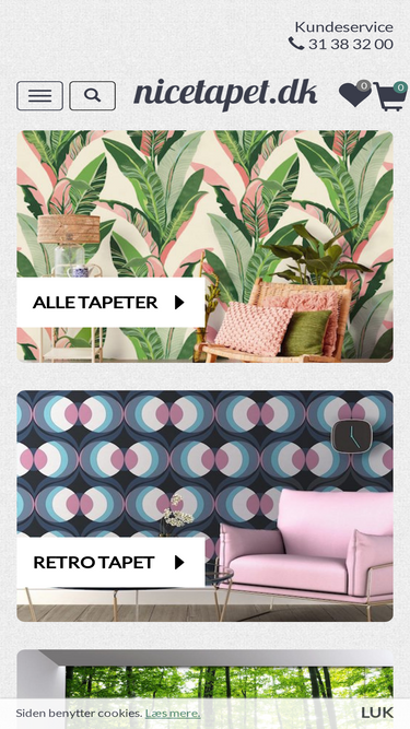 92%Nicetapet.dk hjælper dig med at skabe et smukt hjem. Med vores store udvalg af tapeter, fototaper og meget mere kan du forny dit hjem både hurtigt og billigt. Hurtigt levering, fri fragt over 599 og 30 dages returret.