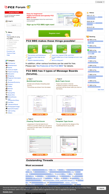 fc2 bbs is easy for beginners and has great features! it supports japanese mobile phones. it's a free service!