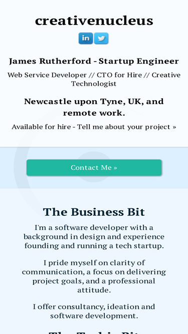 I'm a developer with a background in design, experience running a tech startup and over ten years' commercial practice with PHP and front-end JavaScript. I also work with newer languages, Node.js and Go. I also enjoy working on creative projects, particularly with open or socially-relevant data. I have a background in commercial games development, and am interested in collaborative work.