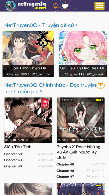 96%Truyện tranh 3Q là trang web đọc truyện tranh nổi tiếng với nhiều thể loại như Manhua, Manhwa và Truyện Màu. Giao diện dễ dùng, cập nhật nhanh, 3Q thu hút độc giả nhờ kho truyện phong phú và tính năng đọc miễn phí