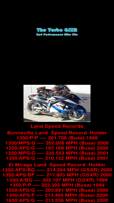 100%land speed racing turbocharged 300 hp gsxr1100 suzuki and performance bikes. turbo bike info. yamaha,kawasaki,honda info and pictures. street fighter pictures and specs