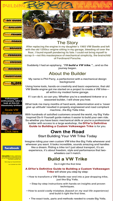 100%A Serious Guide to Building a VW trike showing all construction stages. A selection of plans included